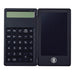 人気の電子メモに電卓が付いた高機能商品! 画面を傷つけずに折りたたんで持ち運べるため、さまざまな場所で活躍します。電卓は12桁表記、ルート計算など基本的な機能を搭載しております。 持ち運び時は液晶部分が内側に折りたたまれるため、画面を傷つける心配がございません。 電子メモ専用のタッチペン付(本体裏側にタッチペン収納スペースあり)。 メモ側の液晶の下にある削除ボタンを押すことで、メモの表示が消去されます。(削除したものは復元できません) 本体外側オモテ面に広範囲のフルカラー名入れ可能。
