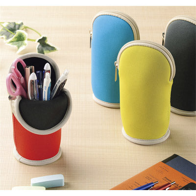 日本文具大賞受賞!机の上でスペースをとらないスタンドペンケースやわらかく手触りのいいシリコン素材のペンケース。机に置いてグッと押し込めばペンスタンドに早変わり!