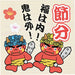 片面には「赤鬼」もう片面には「おたふく」がプリントされた福豆パックです。シール付 <アレルゲン>大豆