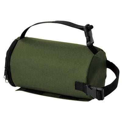 バックル付きのハンドルでバッグに取り付けられるシンプルなペットボトルカバーバッグに下げておけば、外出時でもサッと水分補給ができます。名入れをすれば宣伝効果もUP!ベーシックなカーキ/ネイビー/ブラックの3色アソートでお配りする人を選びません。