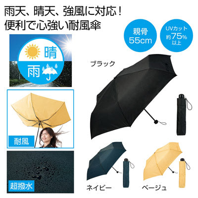 晴雨兼用&耐風&超撥水の3機能!雨の日も晴れの日も、台風の日だって頼れる3in1の優れもの。親骨55cmの全長56cmでUVカット率は75%以上。落ち着いた3色をアソートでお届けします。収納袋と傘のパネル面にも名入れ印刷ができますのでぜひご利用ください。お天気の悪い日に心強い折りたたみ傘として...