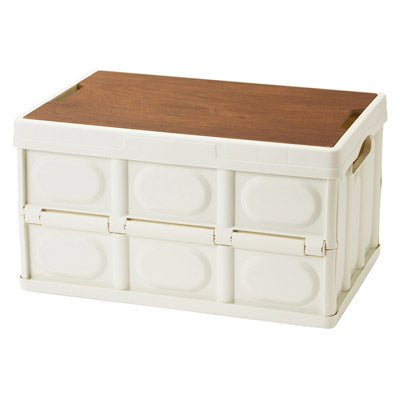 木目調のしっかりしたMDF製の蓋をテーブルとしても使えるスタイリッシュなコンテナですキャンプ道具やカー用品はもちろん、子どものおもちゃや衣類の収納にも。使用しない時はコンパクトに折りたためます。