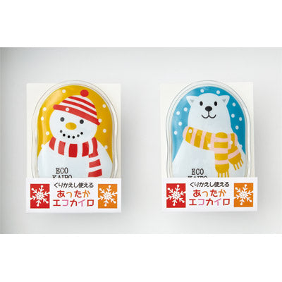 くり返し何度でも使えるエコロジーなカイロです。カイロの中に入っている金属ボタンを数回押し曲げると温かくなります。繰り返し使用する場合は、カイロを布などで包んで沸騰したお湯に入れ5~10分ゆでて下さい。