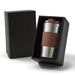 ギフトボックス入りの450mlステンレスタンブラー。スライド式の飲み口はこぼれにくく、蓋付き・真空二重構造なので保温・保冷効果があります。底面にすべり止め付きで、胴部にシリコンカバーが付いており、しっかりと持ちやすい仕様です。身蓋式のパッケージに高級感のあるスリーブが付いており、開封時の高揚感を盛り上げ、進呈用に最適な仕様です。
