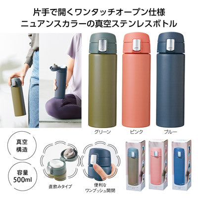 シックで高級感のあるスリム形状ボトル。 ステンレス真空二重構造による保冷温力。 名入れがしやすいブラック単色で使いやすい。