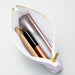 洗練された印象のシンプルなスリムポーチは、表情豊かなオーロラ生地で差をつけて。